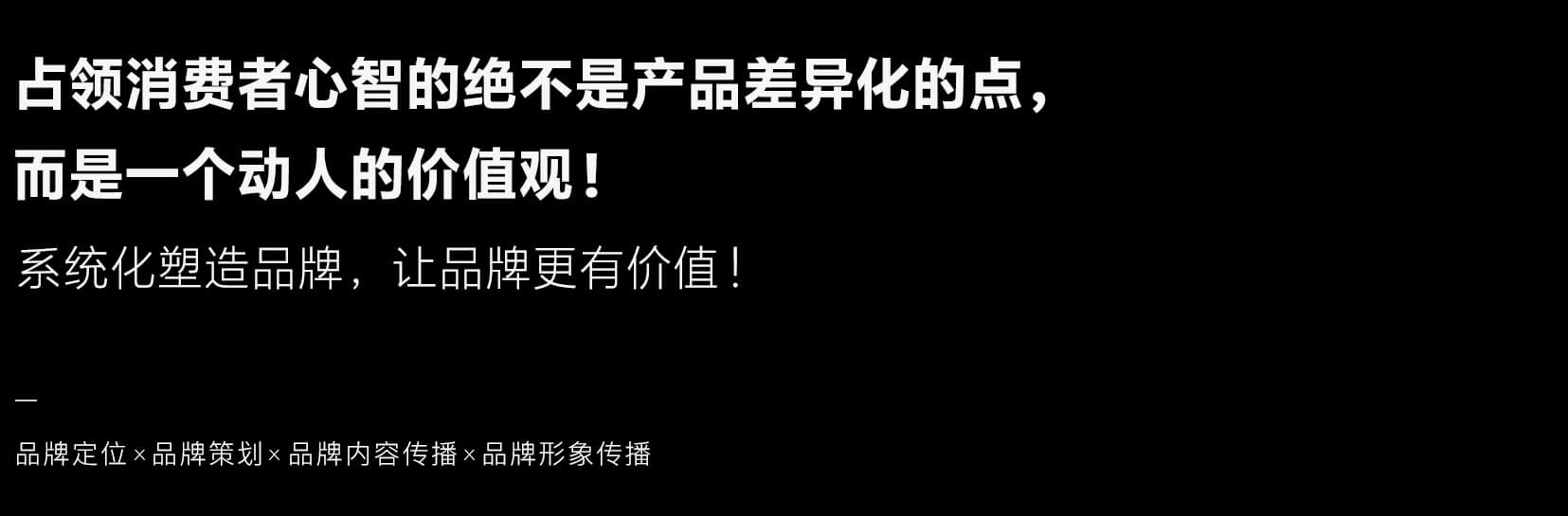 品牌建设是一项系统的工程,它由一系列的符号组合而成,积累品牌价值, 构成一套品牌的资产。它是品牌文化和理念的表达,市场和消费者以品牌来思考和接受,最终达成认同。品牌整体解决方案不仅仅代表服务内容,更意味着整体思维和系统思考!品牌系统工程中的任何环 节单独提取,都必须回归到品牌整体建设的最终目的,让各项专业技术服务于品牌营销目的。